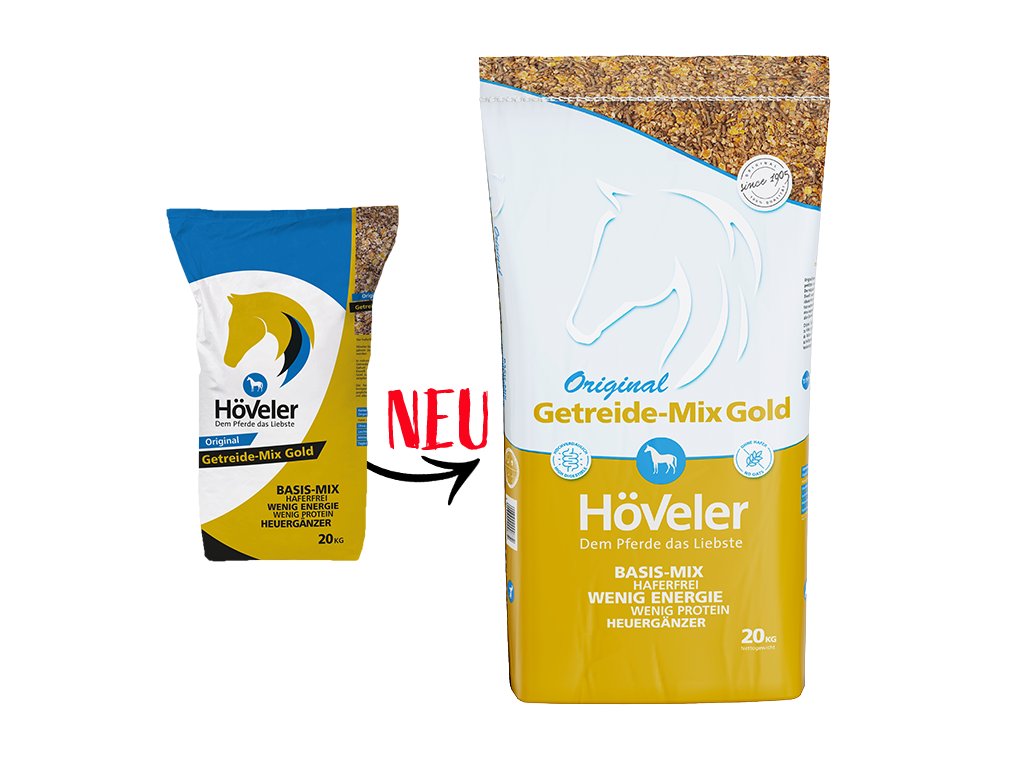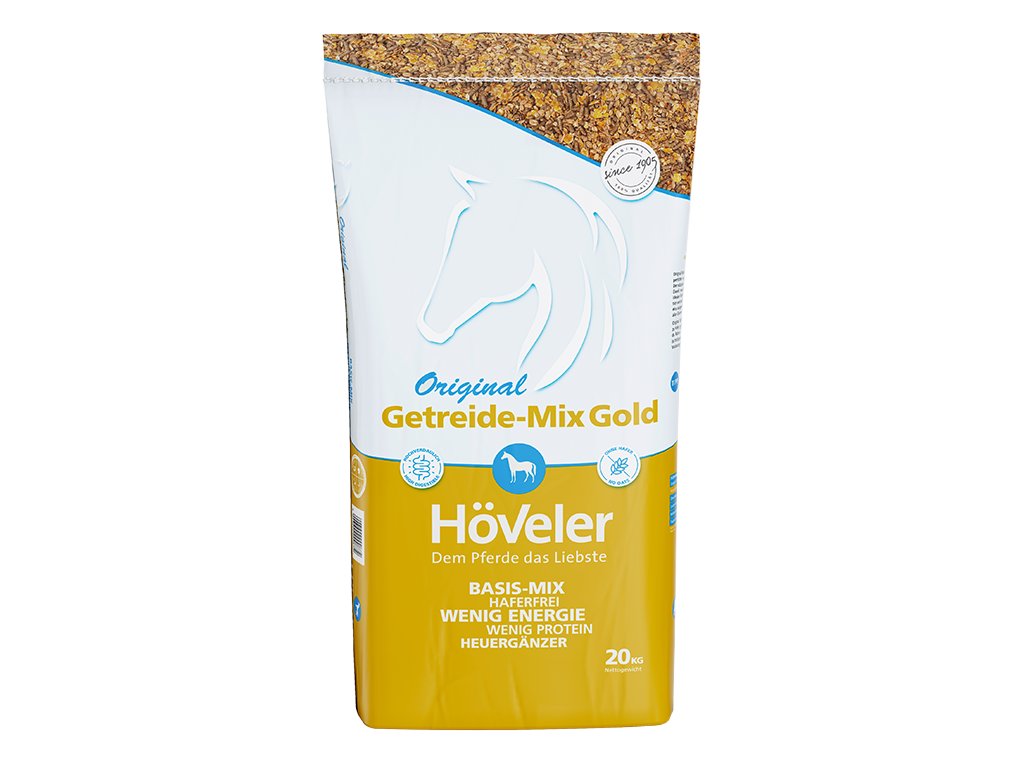 Höveler Getreide-Mix Gold je základní krmná směs, která se nejčastěji používá jako doplněk k senu nebo siláži, ale pro navýšení stávající krmné dávky ji lze kombinovat s obilovinami. Díky přiměřeným dávkám lehce stravitelné energie a proteinu je Höveler Getreide-Mix Gold perfektním krmivem pro rekreační koně. Hodnotné složení zaručuje vyváženou dávku všech základních živin pro vašeho koně.
