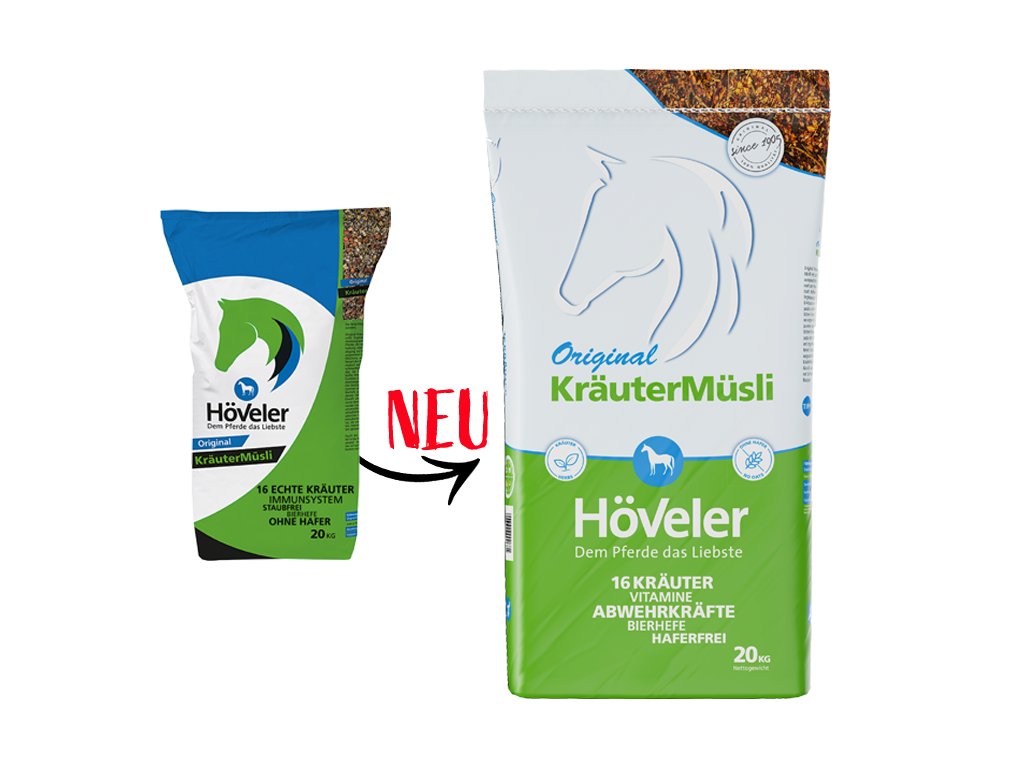 Höveler KräuterMüsli je doplňkové krmivo pro koně s dýchacími potížemi. Vybraná směs přírodních bylinek dělá automaticky krmivo aromatickým a velmi chutným, přidané pivovarské kvasnice pak zaručují dostatečný přísun vitamínu B. Nejen nízký obsah stravitelné bílkoviny a stravitelné energie, ale také jejich propojení, dělají směs plnohodnotným doplňkem, který se dá podávat v libovolných dávkách. Ke zdokonalení poměru vitamínů, minerálů a stopových prvků dopomáhá také extrudovaná mrkev.